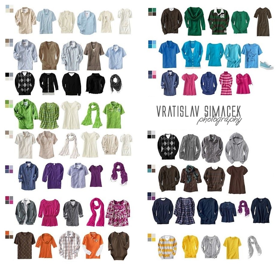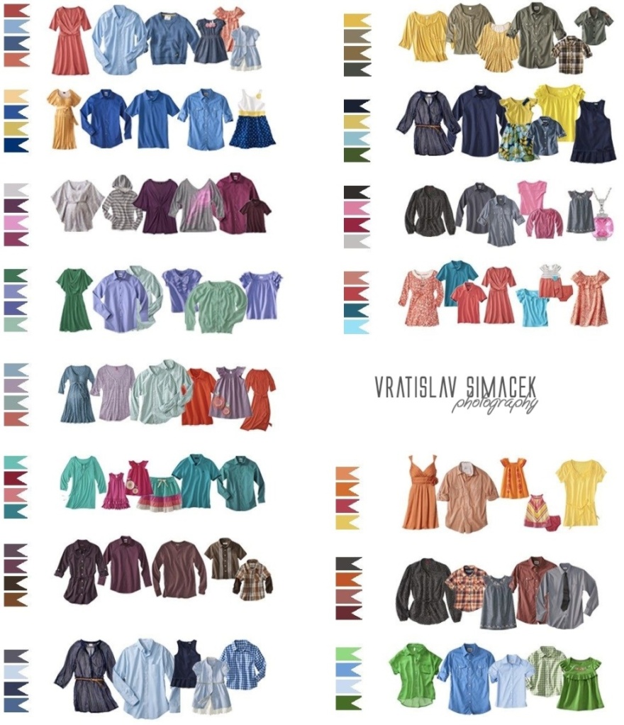 4. Oblečte se tak, abyste k sobě (a prostředí resp. pozadí) ladili. Předem je dobré se s fotografem dohodnout na prostředí a jeho barevné kompozici. Následně pak prodiskutovat možné barevné variace vašeho oblečení. Zde je pár zajímavých barevných kombinací pro vaší inspiraci.